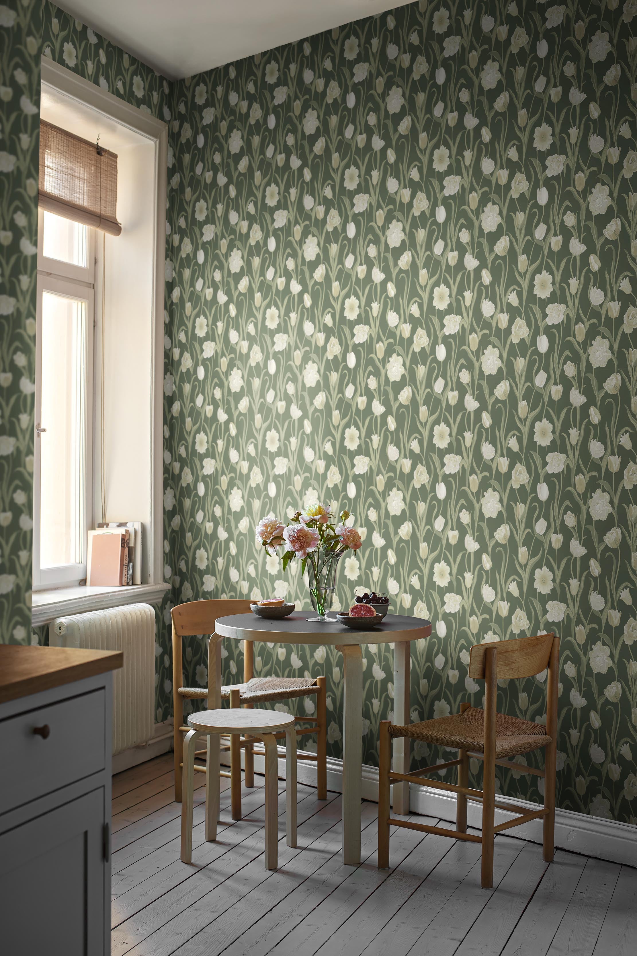 Green wallpapers are always high on our top lists and we understand why. Green fits in every room of the home and with green walls, you create a calm and harmonious atmosphere. Here you'll find tips and wallpaper samples for those who want inspiration for green decor.