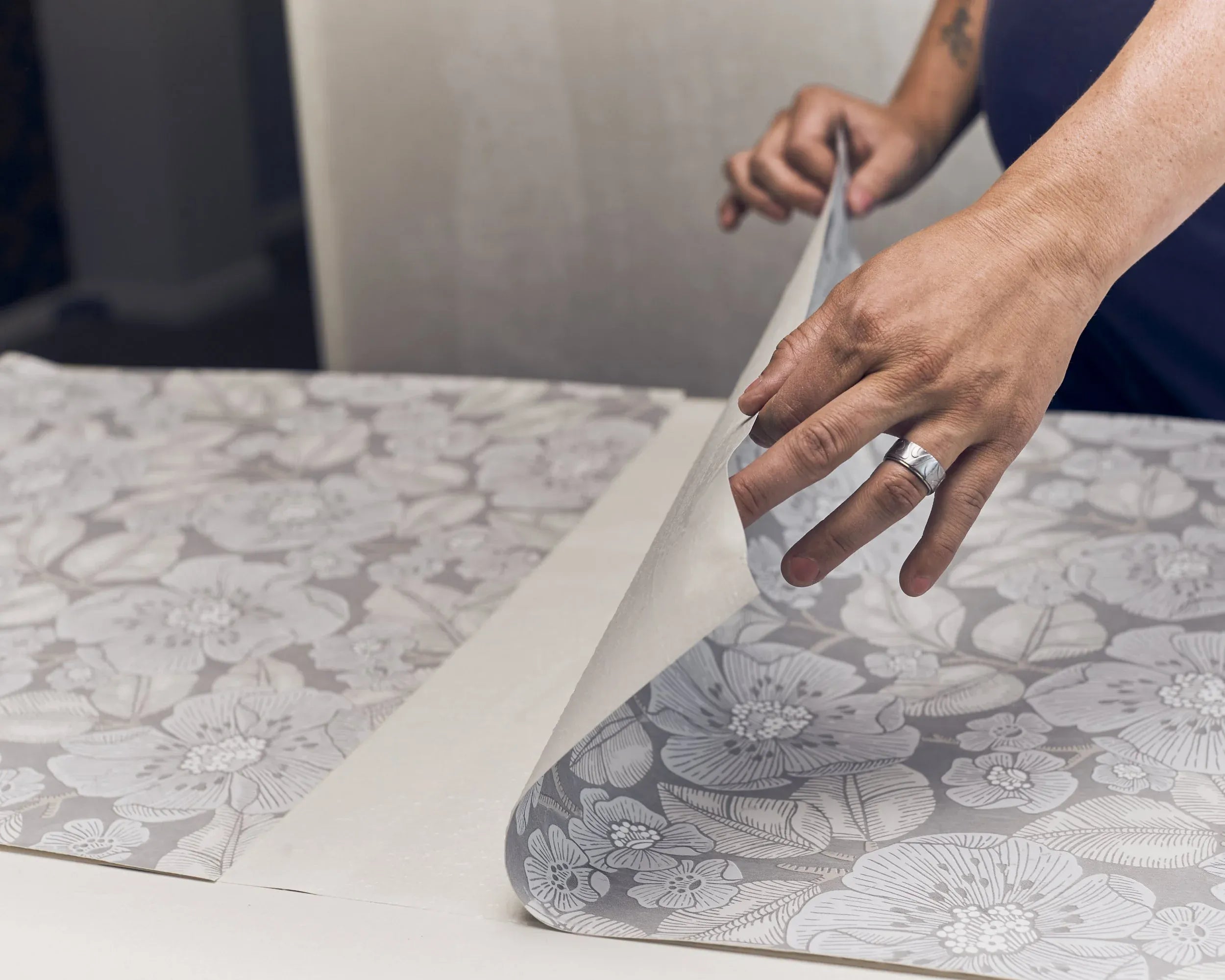 De settes opp ved å lime hver lengde i stedet for å lime på veggen, og settes opp med overlappsskjøt. Les nøye gjennom instruksjonene som følger med tapetene, der finner du også artikkelinformasjon om mønstertilpasning og limanbefaling.