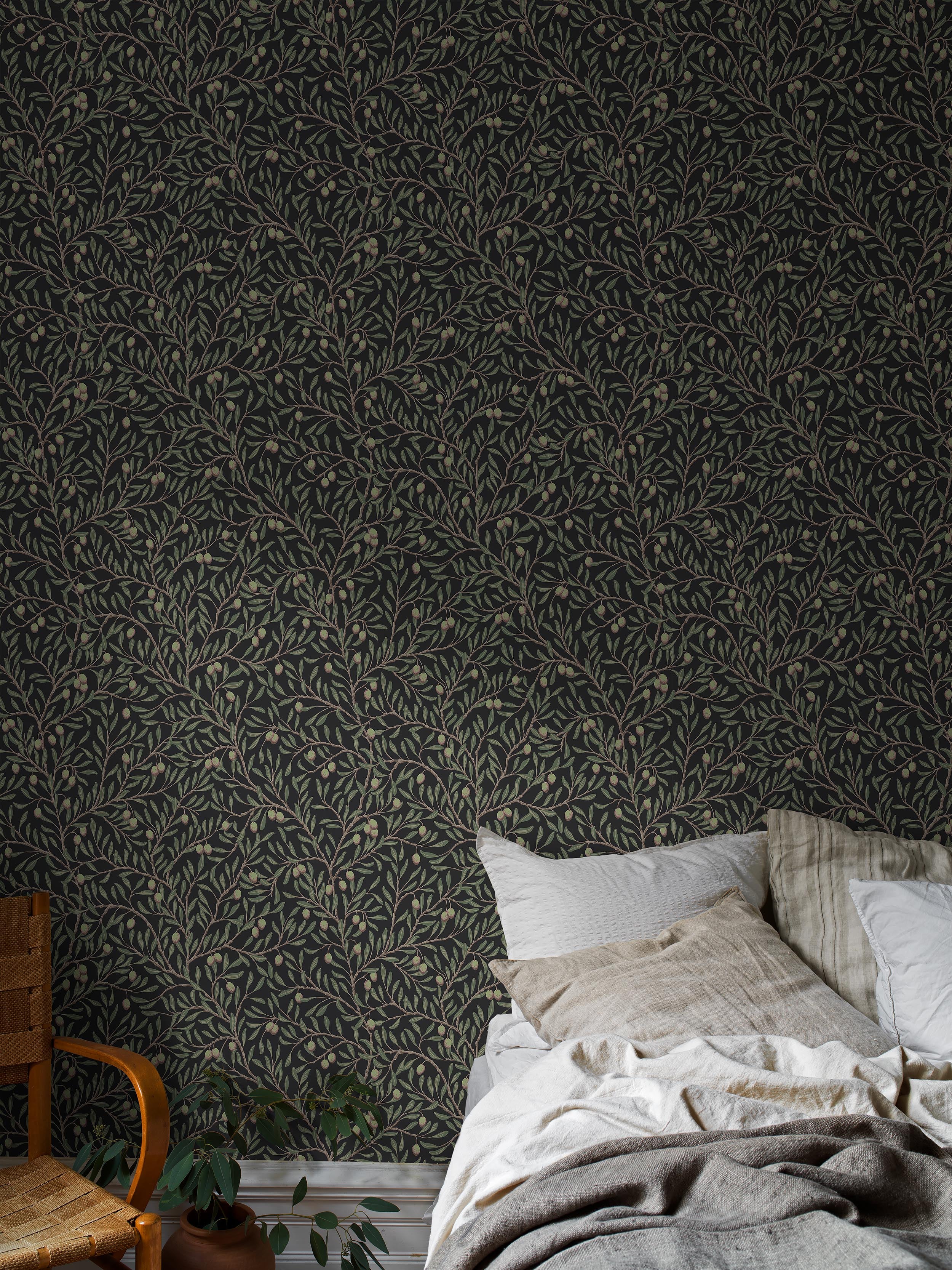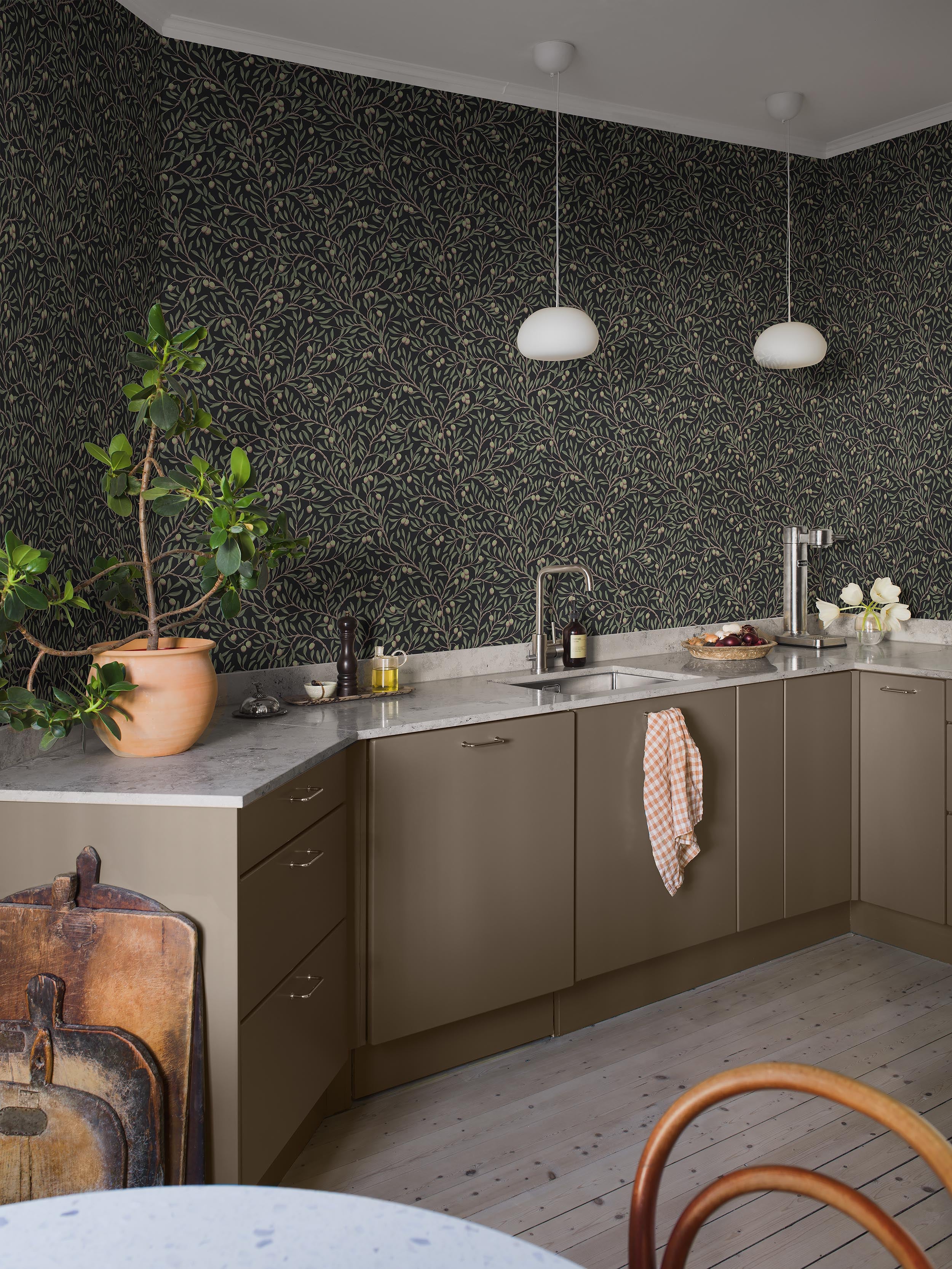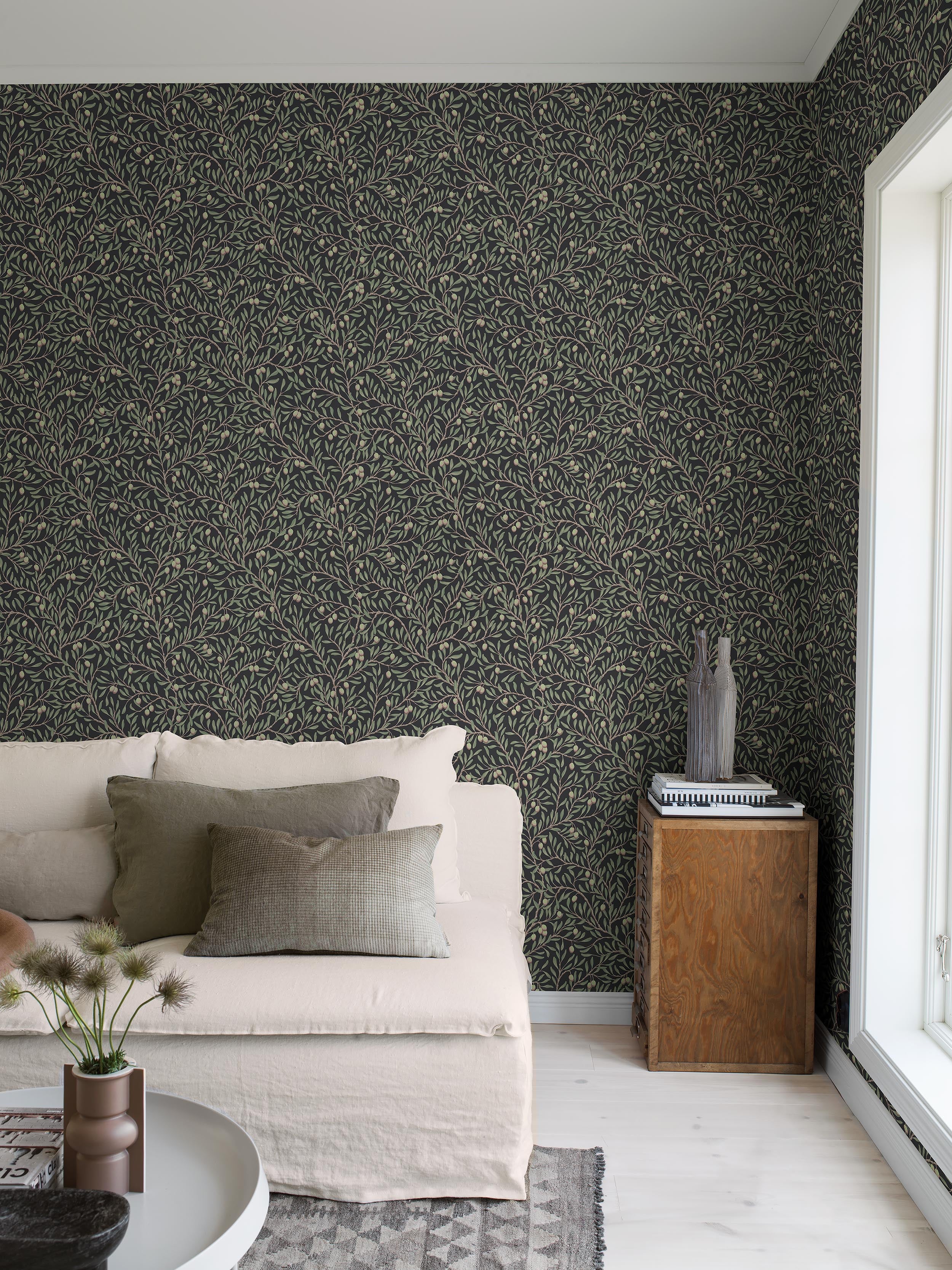 Enten du velger en ensfarget svart tapet eller en svart tapet med mønster, får du en dramatisk vegg med mye karakter.