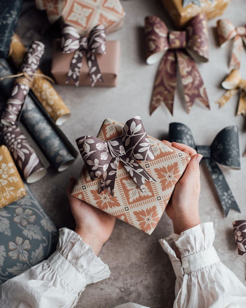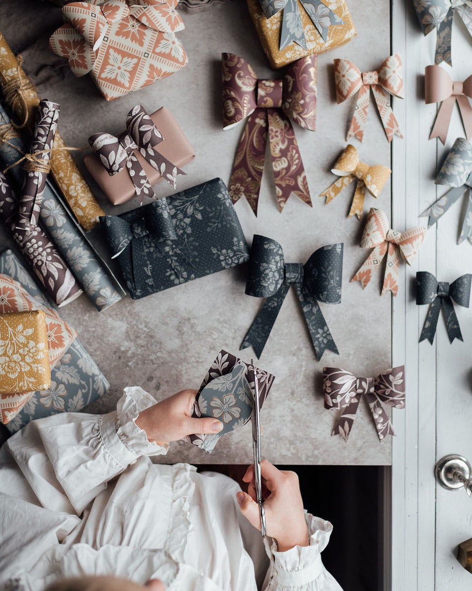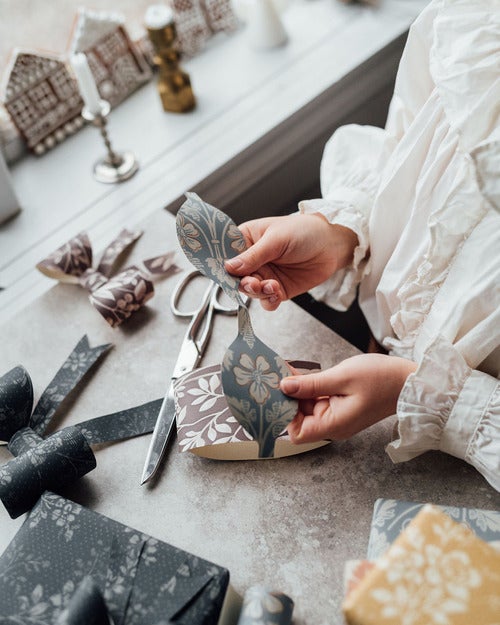 This year we all deserve some especially nice presents under the tree. Here we show you how to use wallpaper to decorate your gifts with lovely bows.