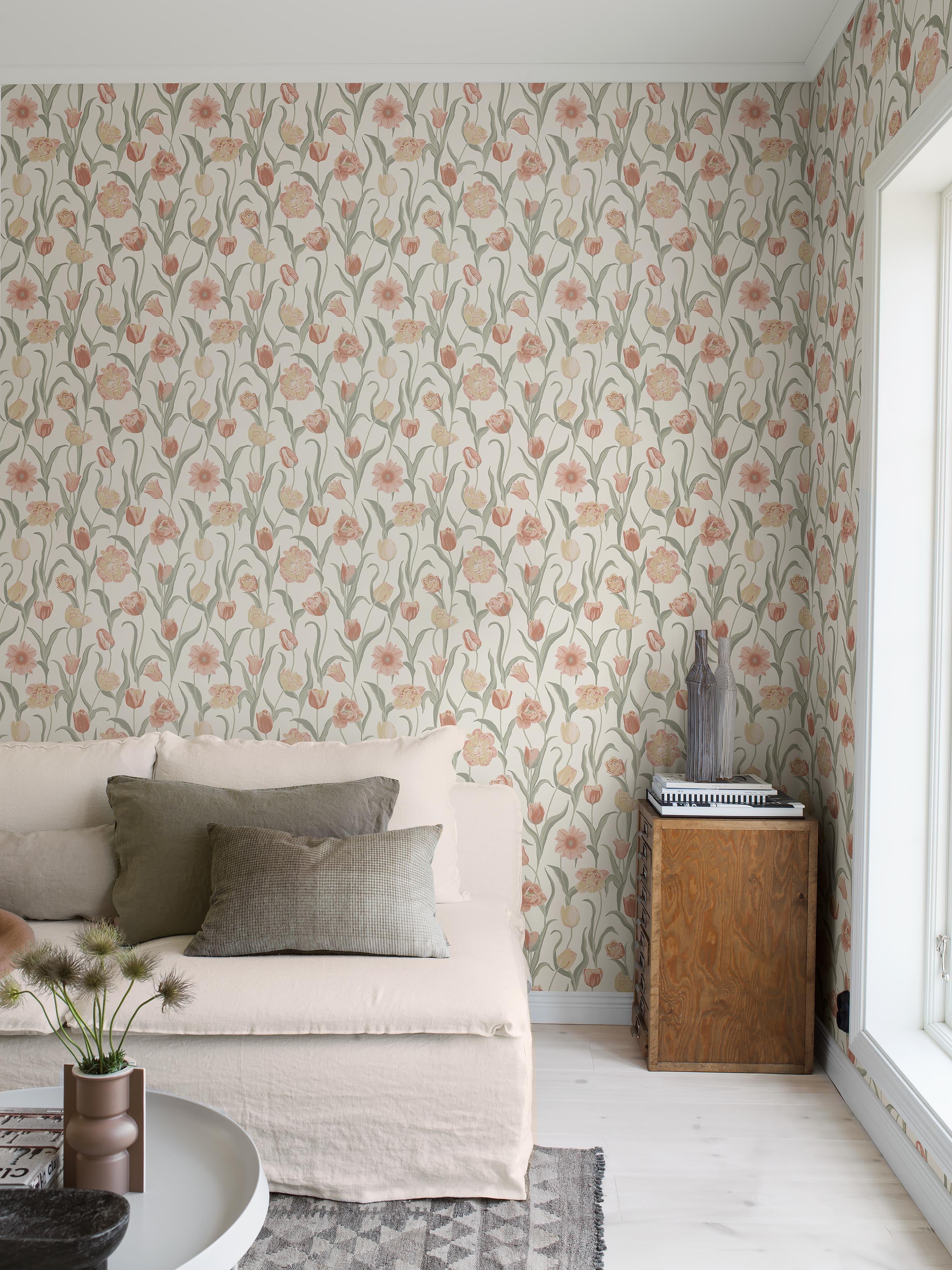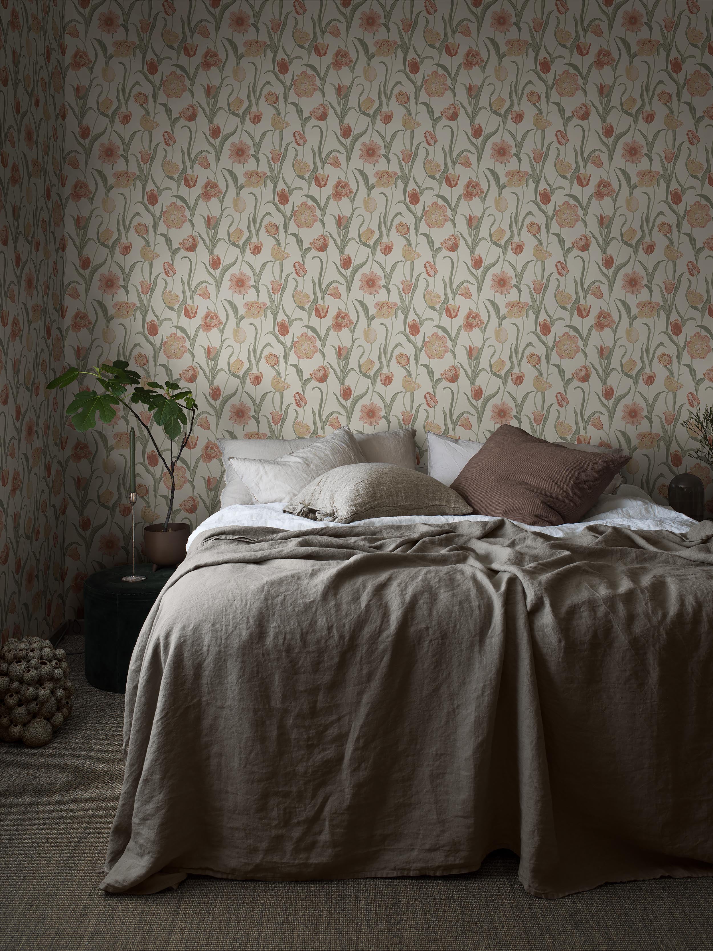 Explore 37 wallpapers, inspired by Swedish summers. Hand-painted florals and stripes are imbued with refined elegance with craftmanship.